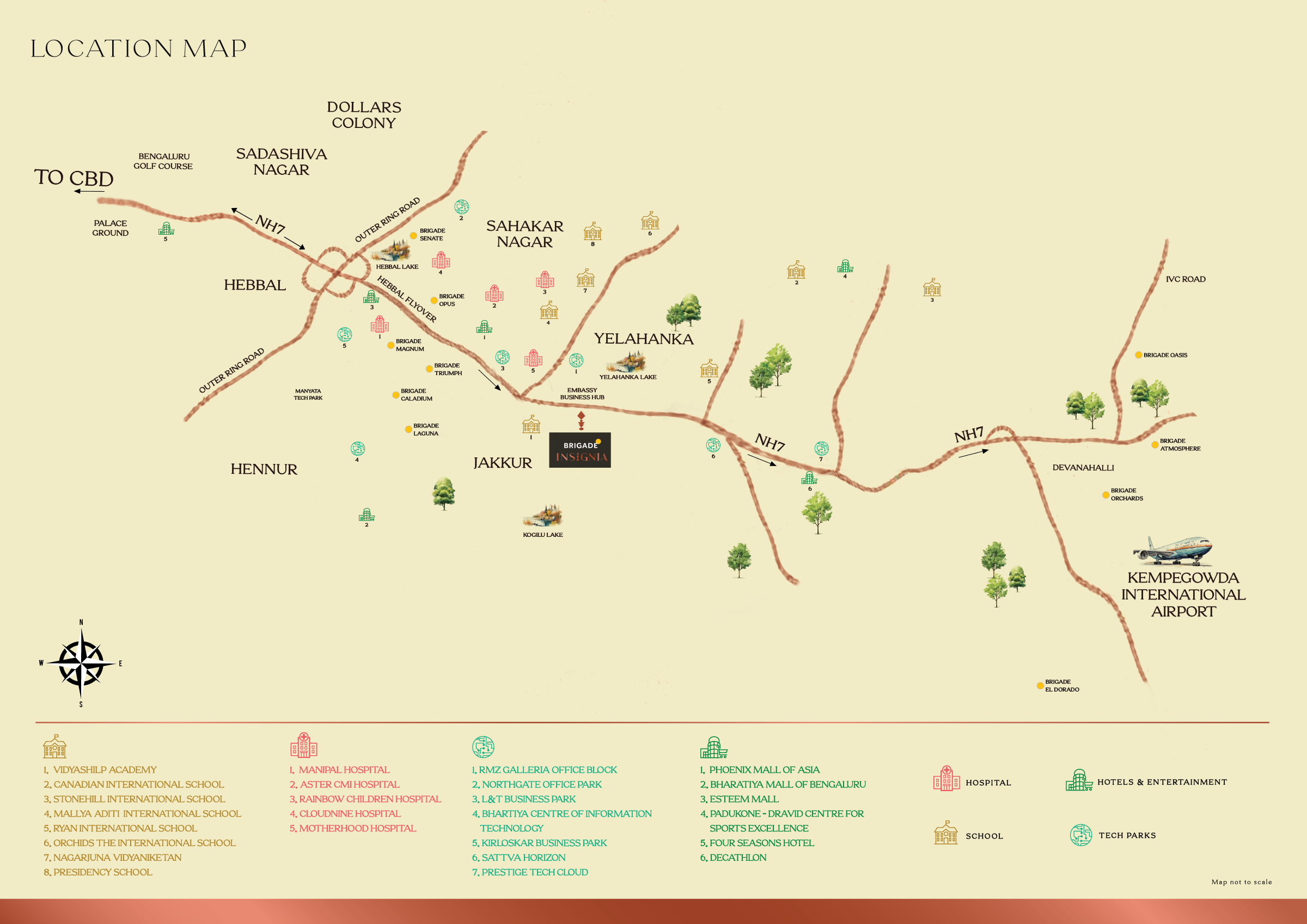 Brigade Insignia is located in Yelahanka, North Bengaluru, right on the airport highway. It also has metro connectivity.