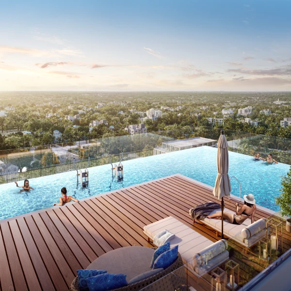 Owning a flat at TVS Emerald Cascadia comes with an array of exclusive benefits like centrally air-conditioned homes with Italian marble flooring, a rooftop infinity pool, a grand clubhouse. Additionally, the project provides a complimentary one-year membership with Quintessentially, a global leader in luxury concierge services, to elevate the lifestyle of its residents.