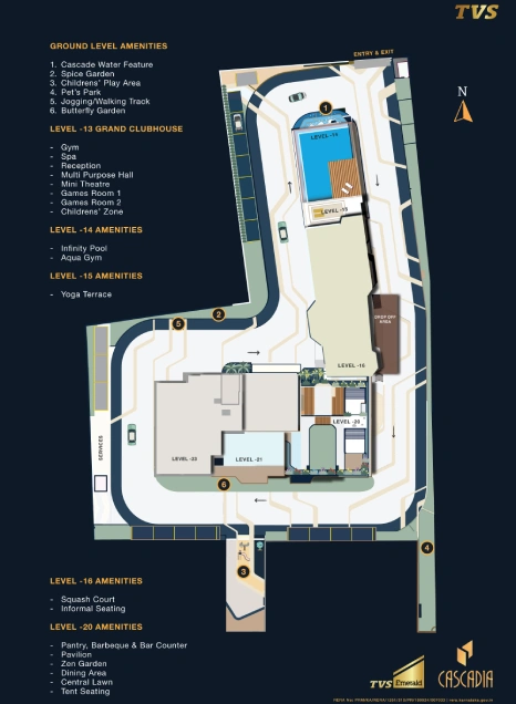 Q: 7. What are the top amenities at TVS Emerald Cascadia?